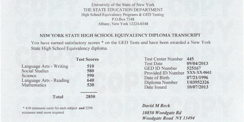 ~ On September 4th 2013 David took the New York State High School Equivalency Exam ~