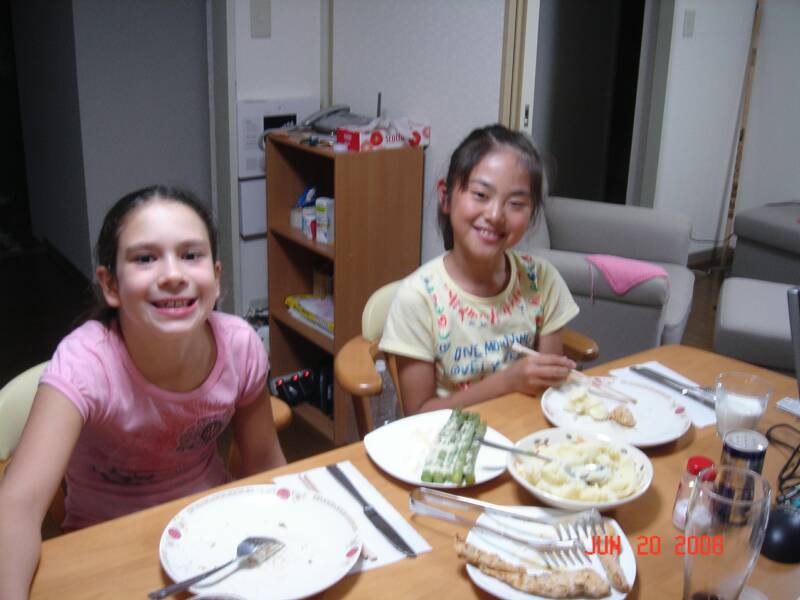 After winning 4 Blue Ribbons at the regional gymnastics trophy competition, Bella boarded a plane headed for Japan on June 10th. She will get to spend three weeks with her dad and also to spend time with her very special friend, Ryoko.