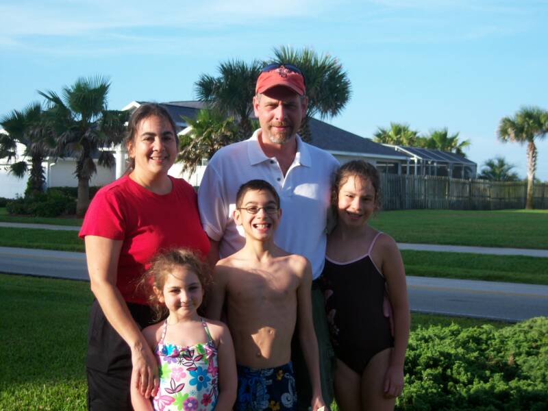 David, Bella, and Sarah in the East Wind Condominium pool.