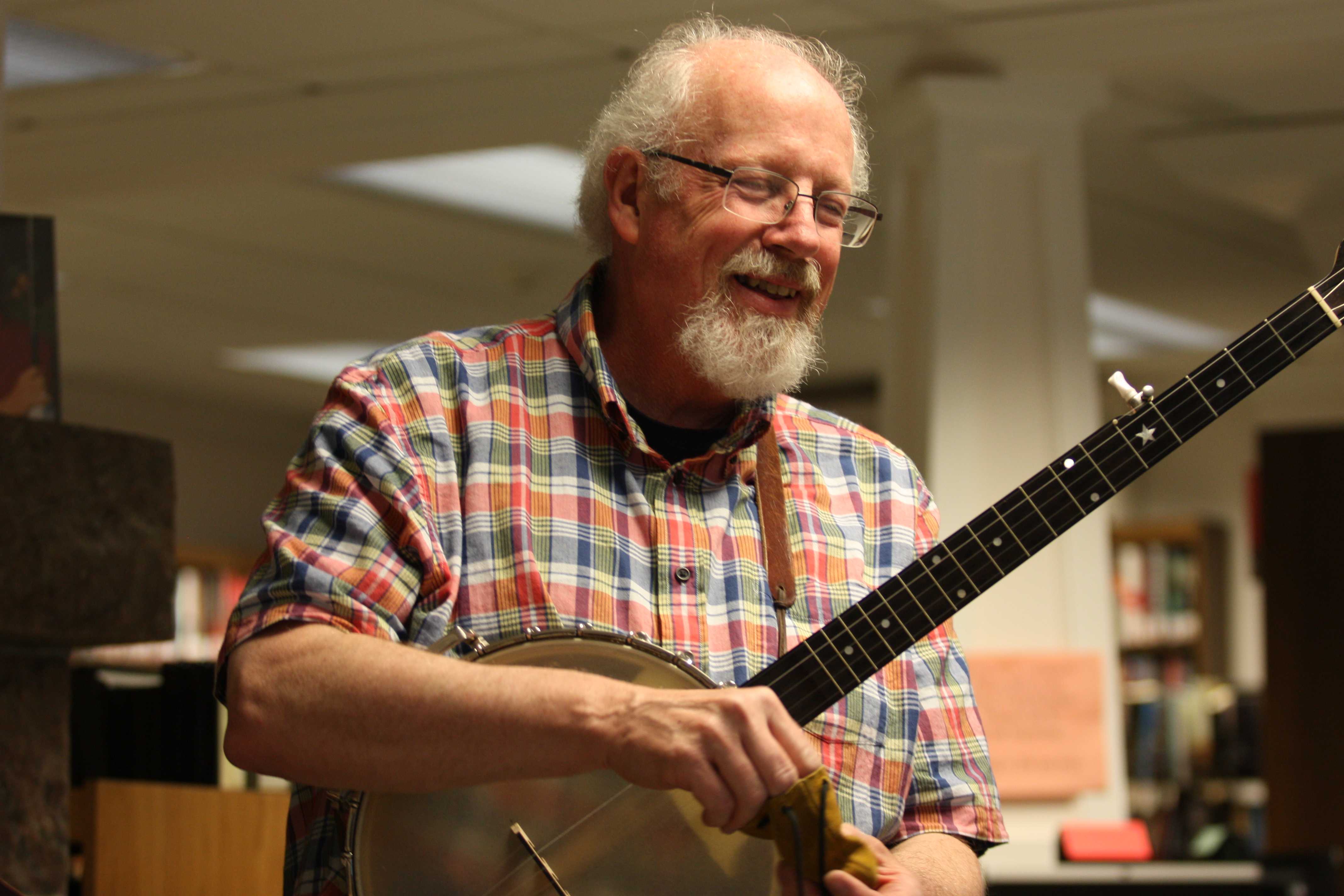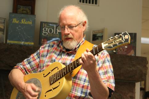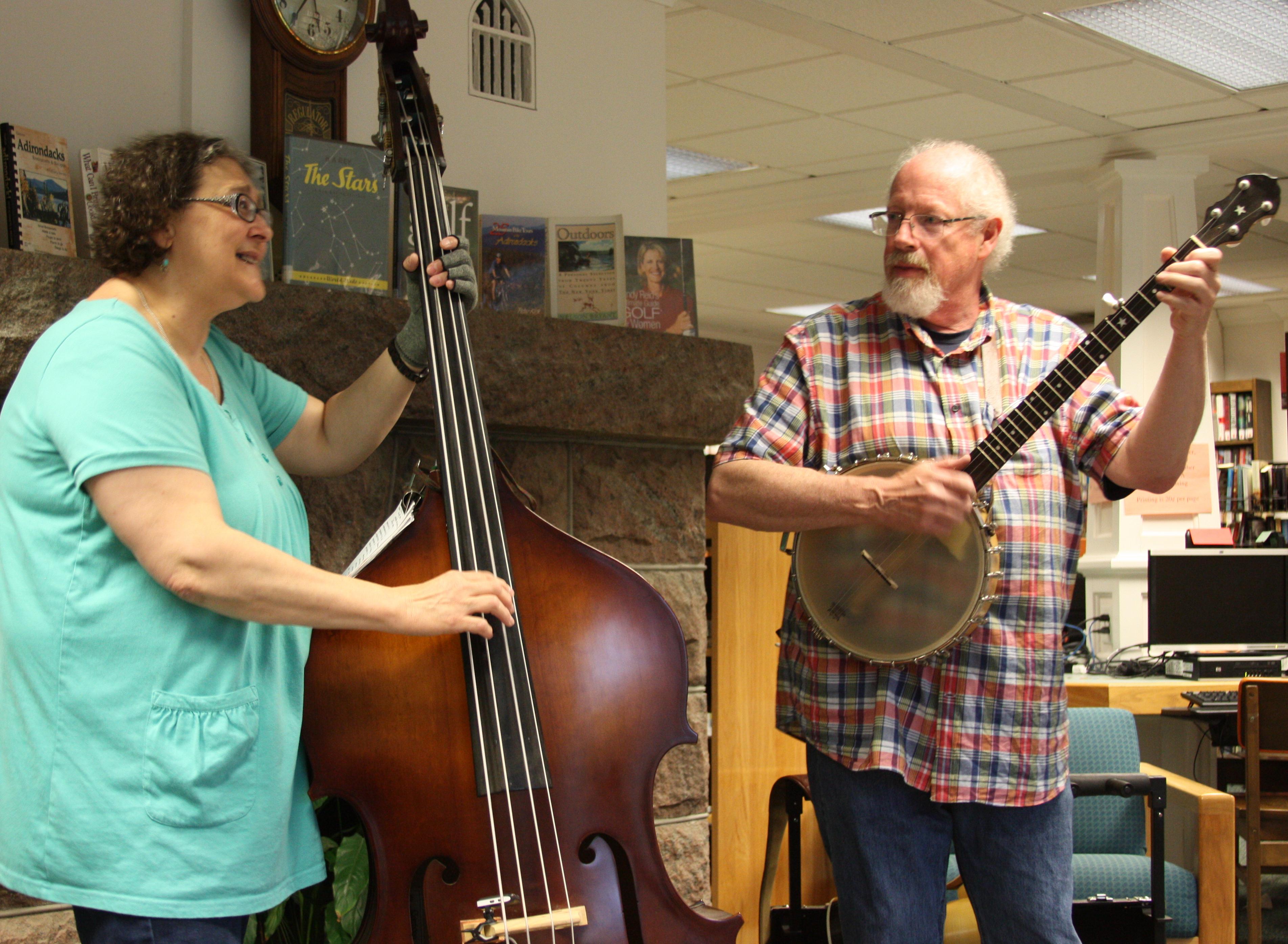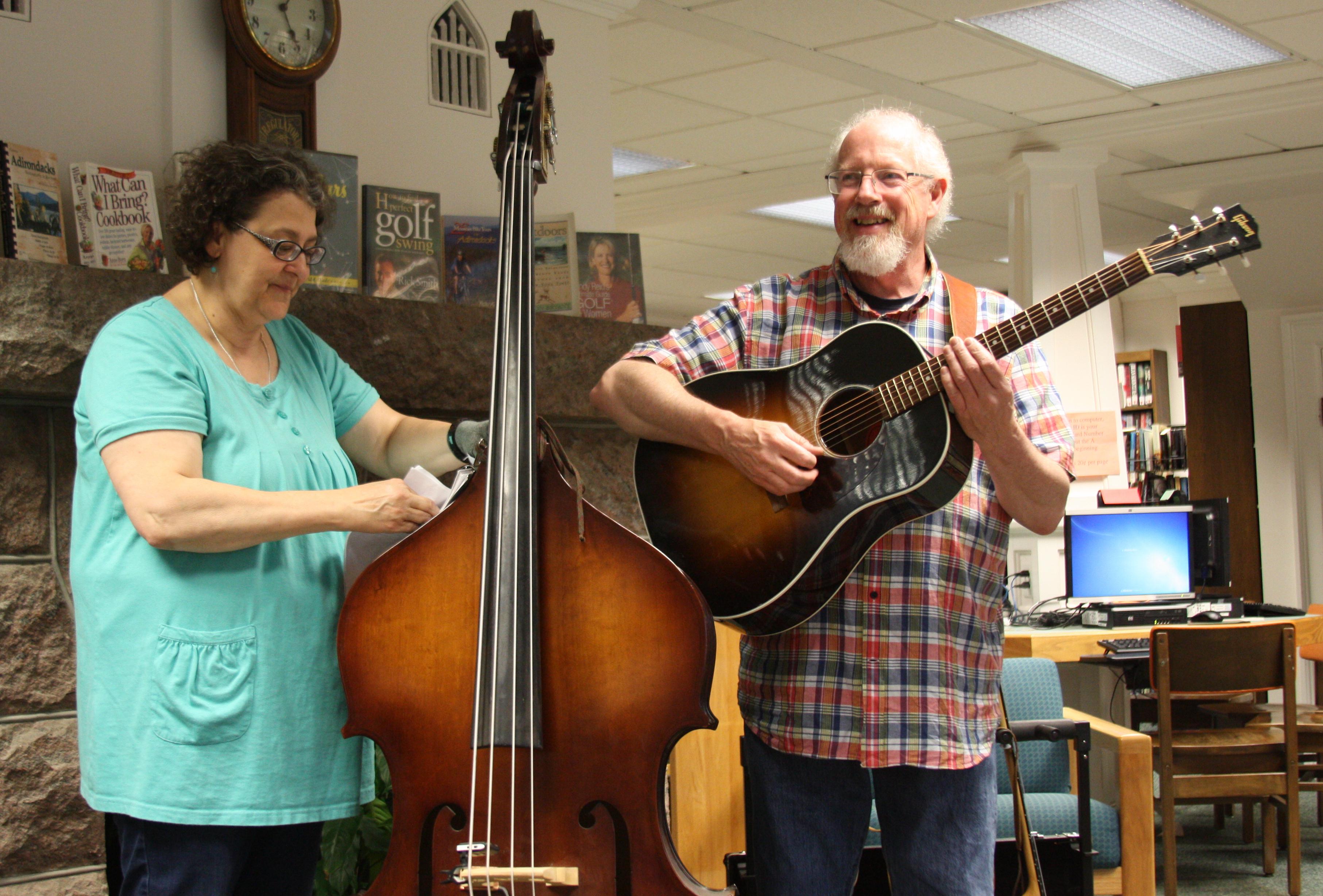 Despite inclement weather the first "Meet Me At The Gazebo At 5" concert was a success. Due to the storm we moved inside to the Library's main room and enjoyed a mix of folk, blues, and traditional music performed by Jim & Bonnie Tracy!