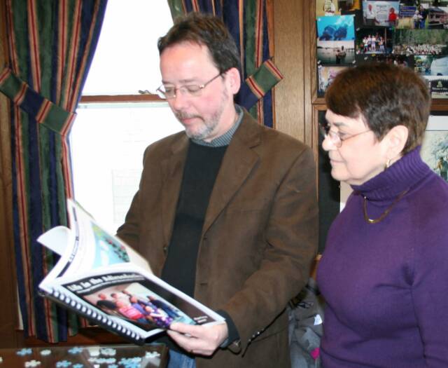 On March 4th 2009 Izzie Worthen, Library Director, presented Kevin McClary, publisher of the Adirondack Express, a copy of "Life In The Adirondacks" which is the collection of all of the works that were submitted for the 2008 event. The presentation was in thanks for all the Exress does to help publish the anthology each year. The 2009 anthology, Adirondack Dreams & Visions, should be available by late Fall.
